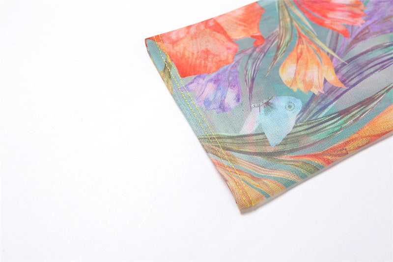 Create an eye-catching look with this 3 Piece Floral Mesh Skirt Set. This set offers a cropped top with long sleeves and a tie front, allowing you to adjust the fit as desired. The breathable mesh material features a stunning floral pattern that looks great paired with the bikini bottoms for a complete look. The sides are elastic to provide support and keep everything comfortably in place, while the mini skirt has adjustable side ruching that creates an additional touch of style. No matter what occasion, you’ll be able to create your own personal look with this great skirt set. The fabric is 100% polyester for easy maintenance, so you can enjoy wearing it again and again.