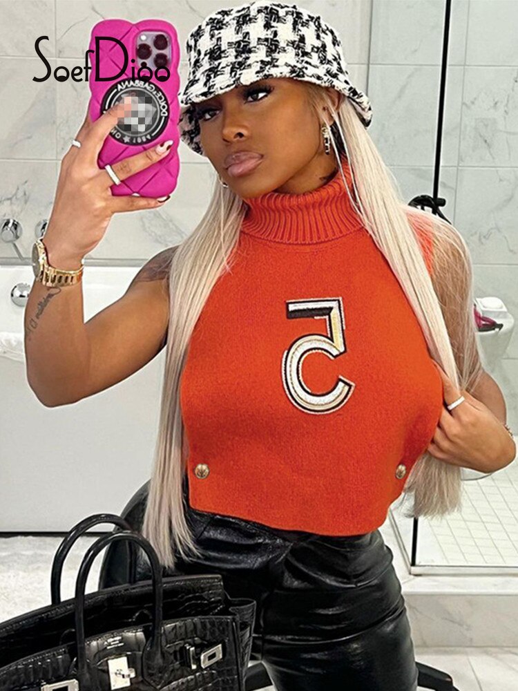 For those looking to make a bold statement, the Turtleneck Sleeveless Pullover Crop Top and Dress is the perfect choice. This stylish vest sweater with embroidered hollow out accents from Tank Top Women Clothes exudes sophistication and femininity without sacrificing comfort. Crafted from high-quality materials, this Turtleneck Sleeveless Pullover Crop Top creates a flattering silhouette on any body type. Whether worn as a dress or top, this piece is versatile enough for any occasion. With its classic turtleneck detail and delicate sleeveless design, you'll be turning heads. Discover effortless style with the Turtleneck Sleeveless Pullover Crop Top and Dress from Tank Top Women Clothes today.